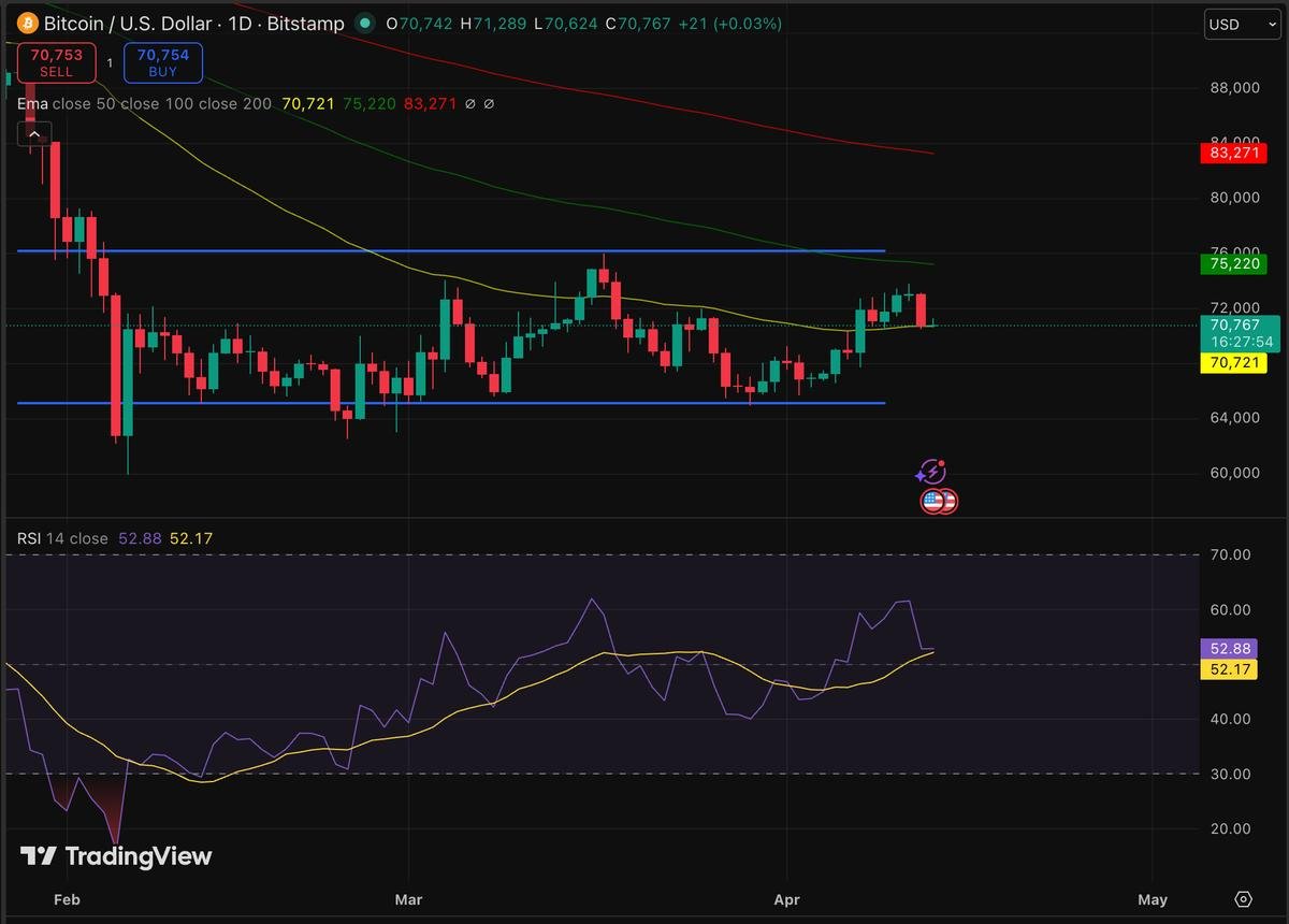 Bitcoin’s current price of $70,700 puts the currency in the mainstream. Traders are looking for an important technical level at $76,000, where support is close to recent prices, with the deepest activity looking at $75,000 before anything breaks, according to Hayes’ interim road map.