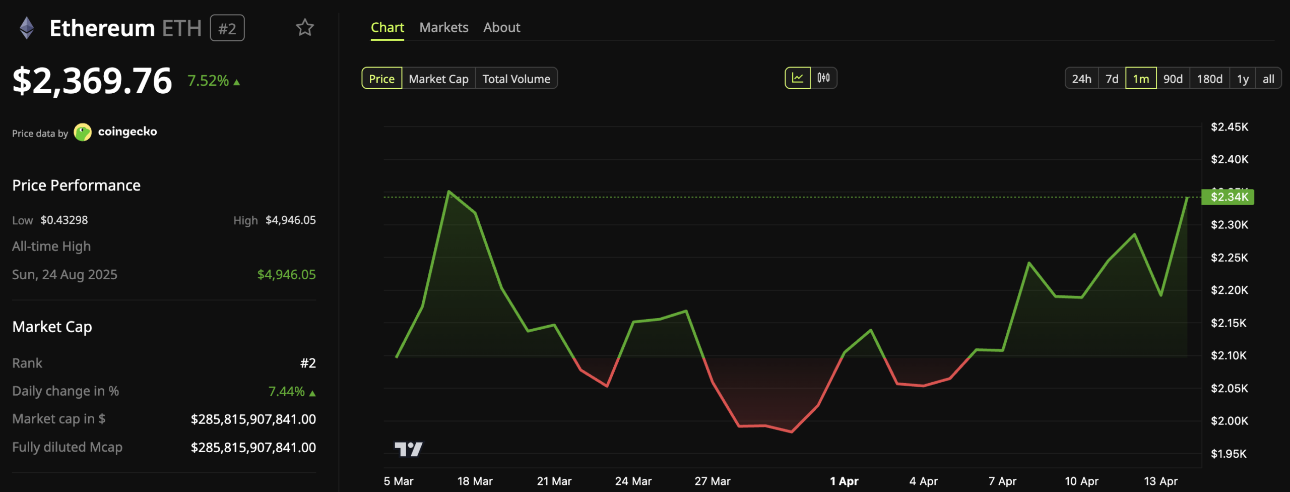 President Bethmain Thomas confirmed to me that ethereum emerged as one of the best performing assets in the past, pointing out that eth has risen by 17.4% since the beginning of the current geopolitical conflict.
