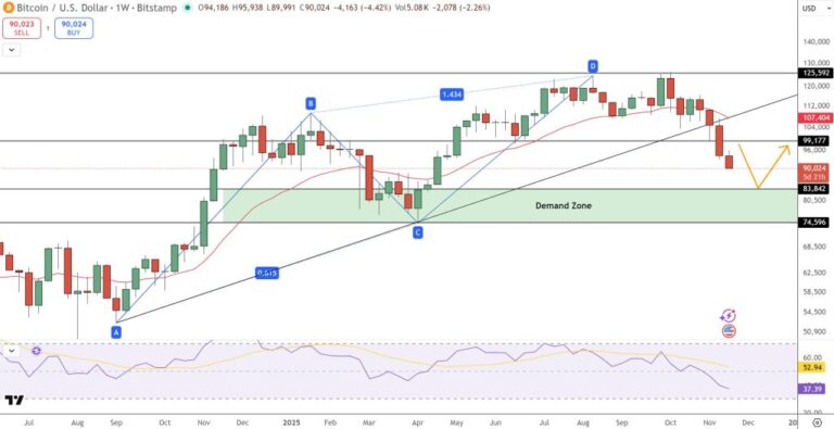 The price of Bitcoin (Bitcoin) is showing signs of a slight loss as its movement continues, so that its abcd pattern has reached its peak, which indicates that the wave that is currently being sold has not yet ended; With…