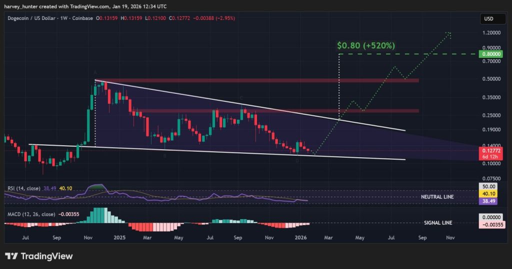 As Dogecoin enters the final phase of the multi-year squeeze against Bitcoin, the weekly RSI in the oversold sector may indicate a strong pressure, which has led to a significant shift of capital from Bitcoin to altcoins.