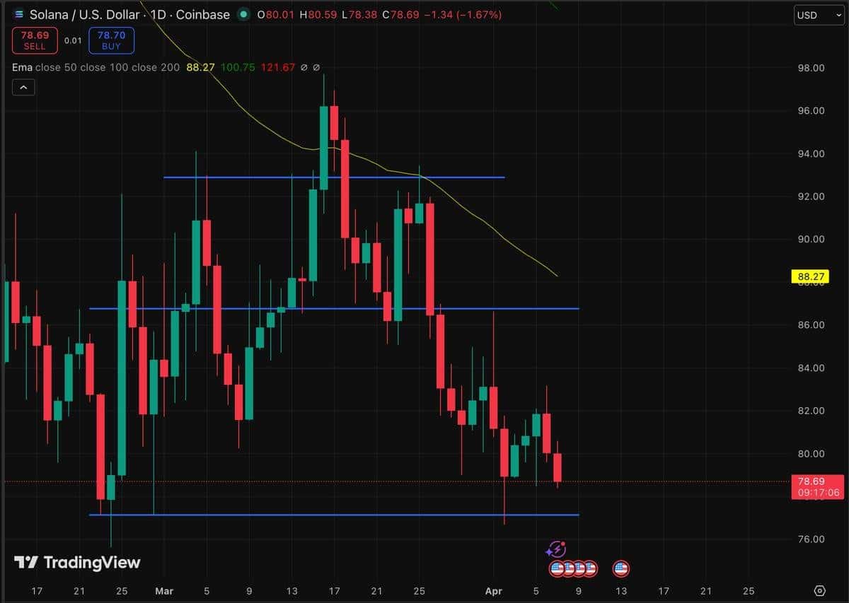 SOL has recently completed a “head and shoulders” pattern on the daily chart, leaving the interest rate of $86 to settle above the level of $75 and 100 in a simple hourly move. The data showed that Solana ETFs recorded outflows of $5.2 million in the week ending on April 6, which is a reminder that institutional funding is on the way.
