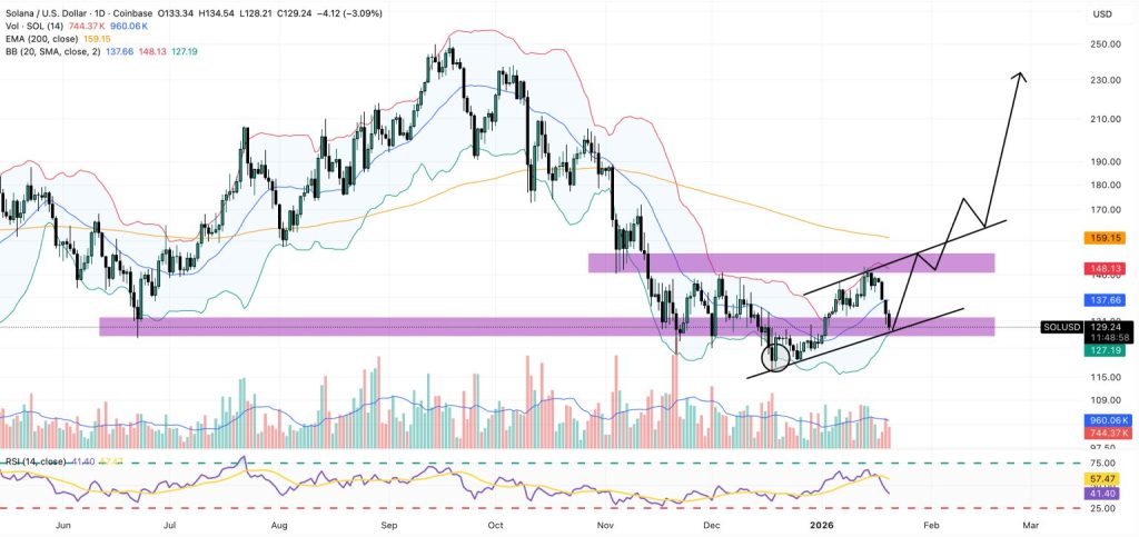 Solana just reached a key technical point at $130, where the trend line and horizontal support meet.