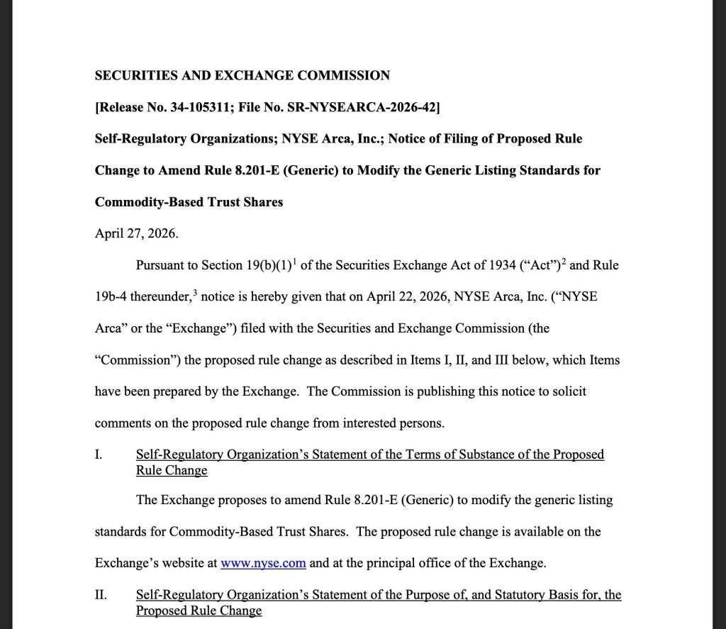 The US Securities and Exchange Commission has opened comments on changes to the NYSE Arca rules that could also increase the eligibility of crypto ETFs.