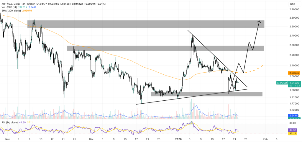 Although it recently fell below $2, XRP has gained 5% since the beginning of 2026. The trading volume jumped almost 20% to $4 billion in the last 24 hours, when the currency found support on a large scale.