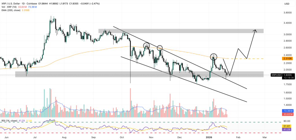 The 200-day Exponential Moving Average (EMA) has been a strong resistance for XRP during this period, but the price is already finding support at the $1.90 level.